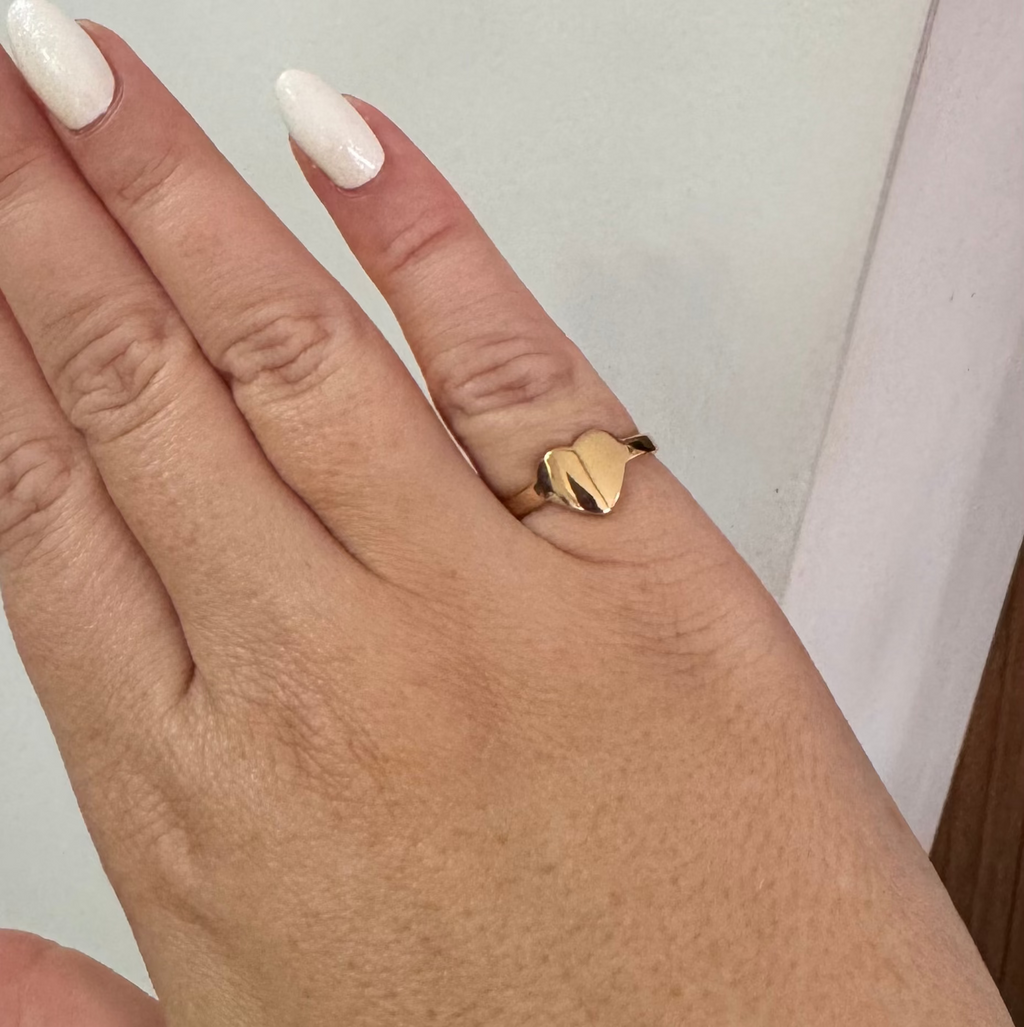 Anel banhado a Ouro com coração liso.