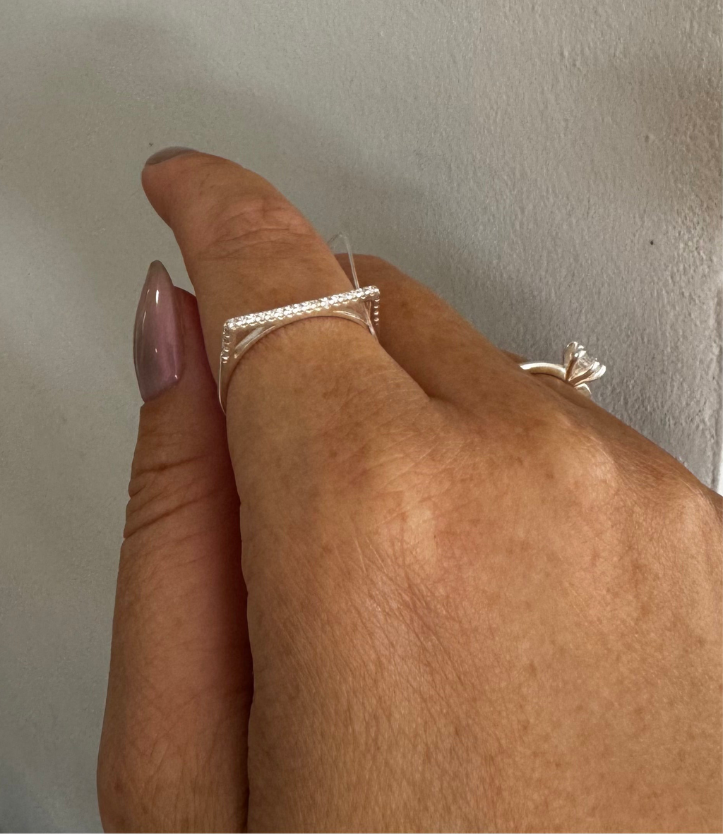 Anel Quadrado Cravejado | Prata 925.