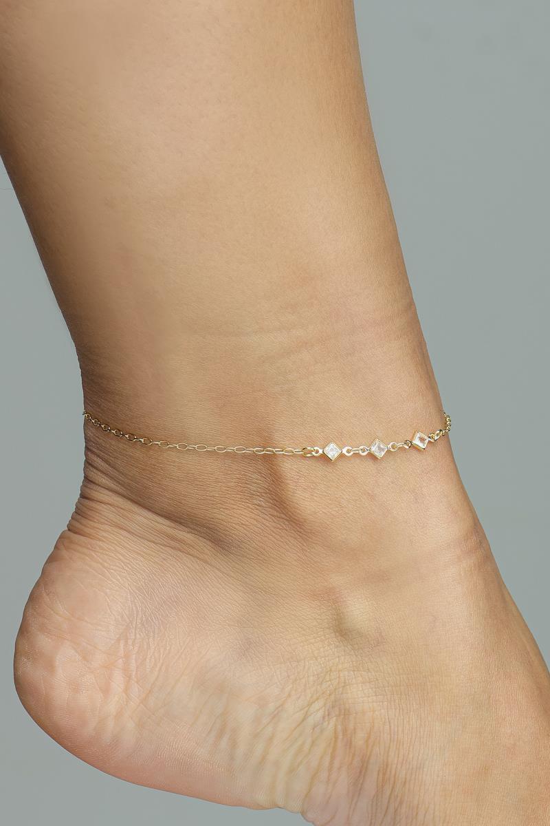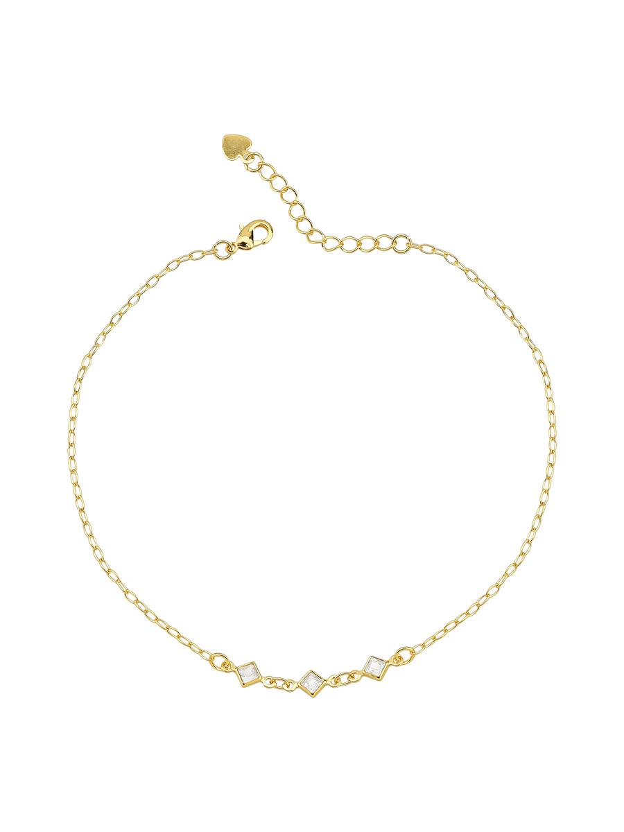 Tornozeleira Losangulo Zircônia Banhado a Ouro 18K.